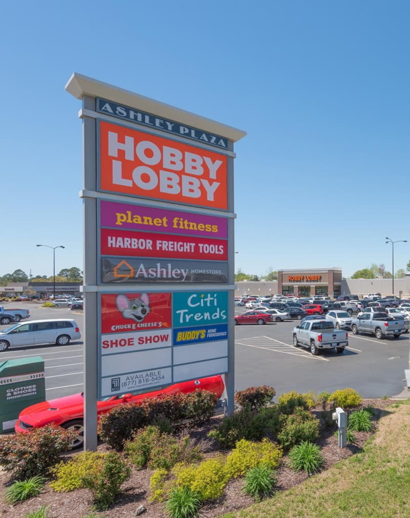 Ashley Plaza is 98% occupied and anchored by Hobby Lobby, Planet Fitness, Ashley HomeStore and Harbor Freight Tools. The center is also home to several other regional and local tenants, including Shoe Show, Chuck E. Cheese and Smart Repair Center, and was renovated last year to modernize the look and feel of the asset. Situated on 15.49 acres at 201 North Berkeley Boulevard, Ashley Plaza is positioned in the main retail corridor in Goldsboro, which is about 54 miles east of Raleigh. It’s location at the corner of North Berkeley Boulevard and East Ash Street exposes the center to more than 34,000 vehicles per day, and the center has regional and limited retail competition within a 30-minute drive. Ashley Plaza is adjacent to Seymour Johnson Air Force Base, which is home to approximately 12,000 active-duty military members, their families and other supporting personnel.